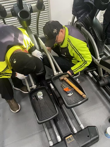 器材维修团队每日对场地内各类体育设施进行全方位检查,重点保障篮球架、足球门、单双杠等固定设施的结构安全;针对各场馆及健身教室健身设备实施专项维保计划,通过每日进行性能检测和全面保养,确保设备运行安全稳定。同时建立了快速响应机制,确保设备故障得到及时处置。